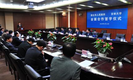 根据服务国家重大战略需求,加快推进长吉图服务开发开放先导区的建设,4月12日下午,欧美日本国产一区二区三区在线看与敦化市人民政府全面合作签字仪式在吉大举行,同时还举行了敦化市政府委托欧美日本国产一区二区三区在线看开展系列规划研究协议的签字仪式。吉大党委常务副书记兼副校长王胜今、敦化市委书记韩兴海、市长冯喜亮等出席签字仪式,吉大东北亚研究院有关负责人及部分教师代表与会。